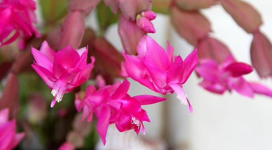 Декабрист ценят за то, что он цветет зимой, когда другие растения «спят». Может долго цвести белыми, розовыми, малиновыми и фиолетовыми букетиками. К поливу не требователен, но любит опрыскивание.