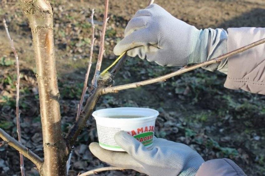 - места срезов заделать садовым варом, глиняной болтушкой (1 часть коровяка, 2 части глины, сено или солома), цементным раствором (3 части песка, 1 часть цемента, вода, олифа).