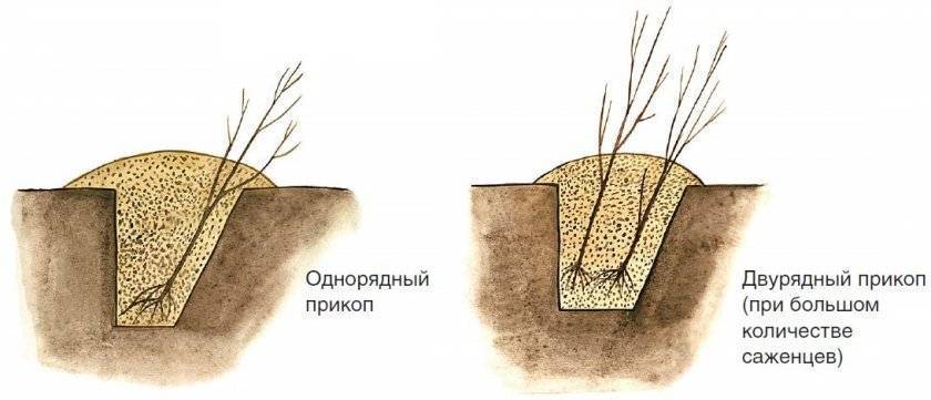 Если до момента посадки ещё 3-4 недели, а саженец уже приобретён, то следует позаботиться о его сохранности. Растение размещают в прохладном помещении при температуре в +5°С. Корневую систему необходимо завернуть в плотную бумагу или мешковину и обеспечить хорошее увлажнение. Саженцы можно прикопать на участке, для чего потребуется просто присыпать корневище почвой и постоянно проводить увлажняющие процедуры.