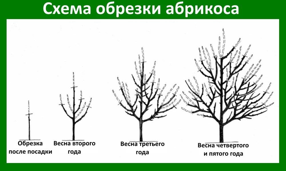 - На 3-5-й год жизни абрикосов побеги частично удаляют, сохраняя между оставшимися расстояние порядка 50-55 см.
