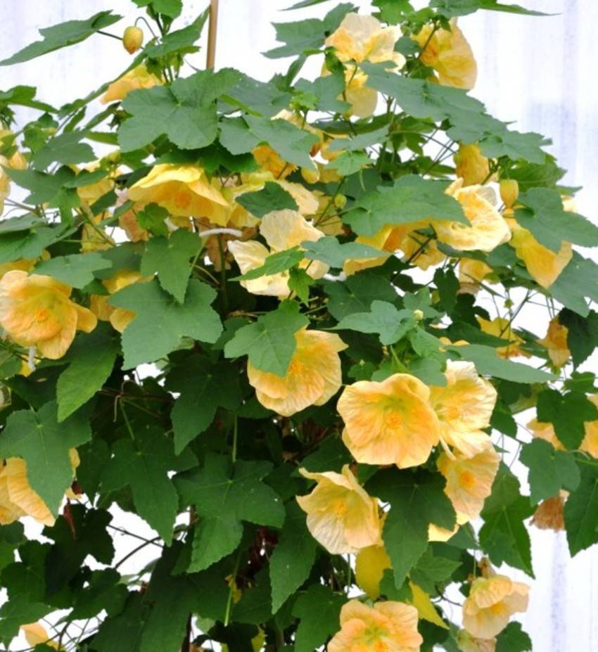 У абутилона есть и другие названия. Благодаря резным краям листьев его называют «комнатный клен», а цветки, внешне напоминающие колокольчики, дали еще одно название – «китайские фонарики». Комнатный клен иначе называют «канатник», поскольку прочные волокна растения используются в Китае и Индии для изготовления веревок и мешковины.