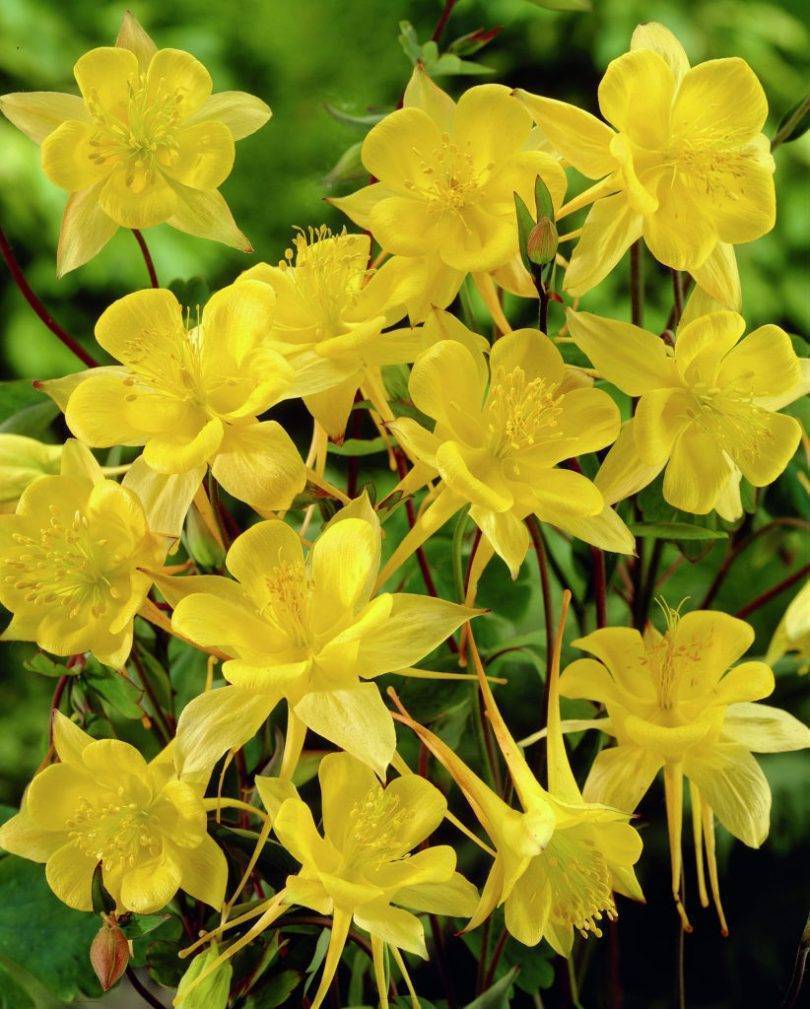 Культура родом из Северной Америки. Имеет крупные, непоникающие цветы золотистого оттенка с длинными шпорами. Вид зимоустойчив, но еще не очень распространен в наших регионах.