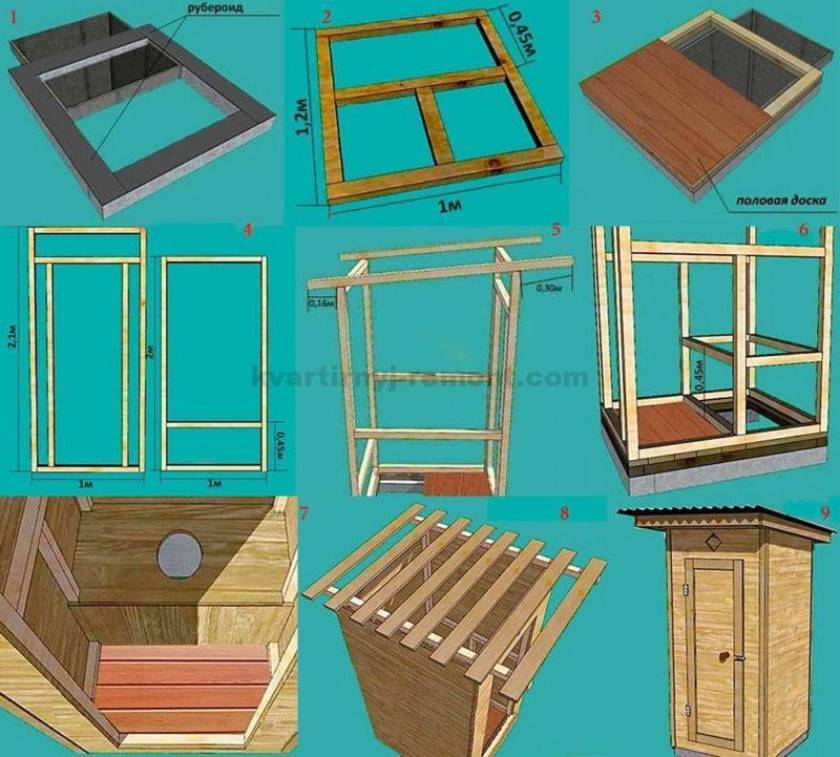 Если имеются размеры и чертеж туалета на даче своими руками можно перекрытие организовать таким образом: