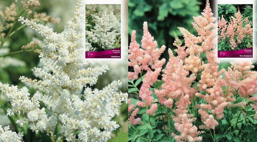 На фото: Астильба японская Аваланш и Астильба японская Пич Блоссом