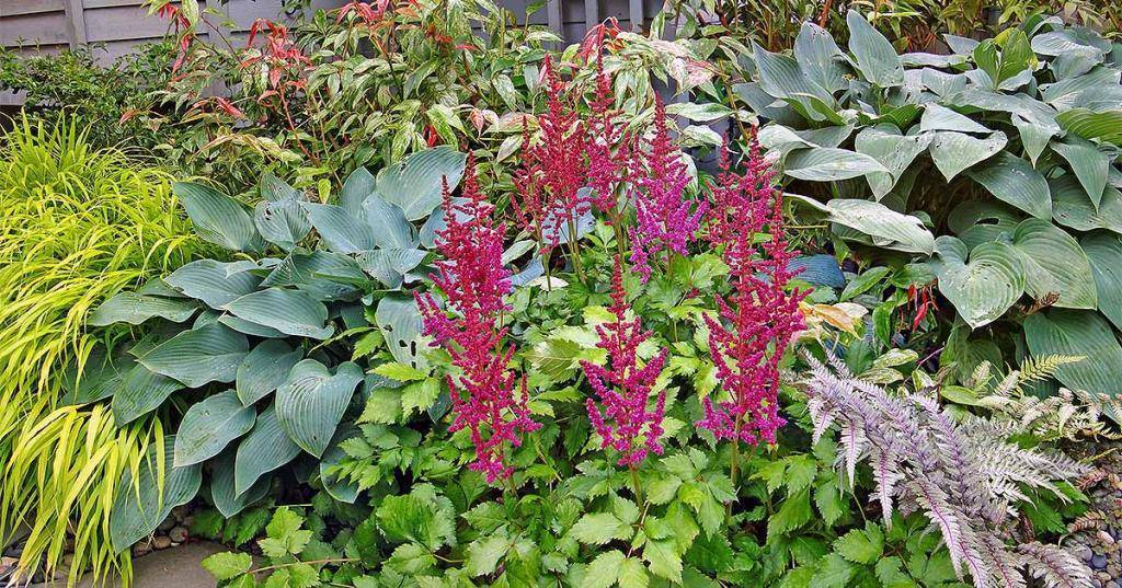 Большинство сортов астильбы может расти в местах с довольно высокими грунтовыми водами и переносит даже застой воды.