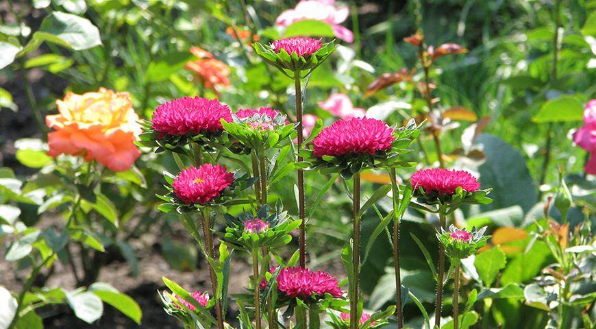 Астра легко уживается и хорошо сочетается с любыми садовыми цветами