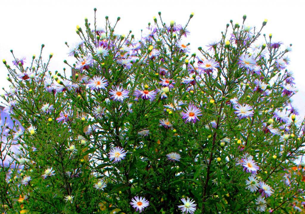 Осеннецветущие астры представлены более разнообразно: астра новобельгийская, астра кустарниковая и астра новоанглийская.