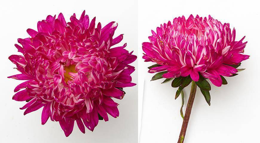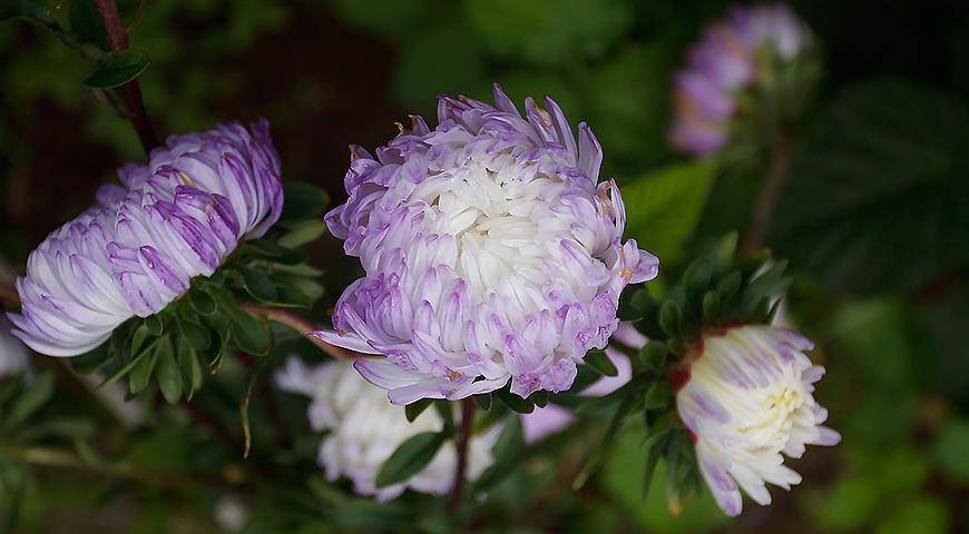 Срезочная астра высотой 60-80 см. Формирует махровые двухцветные соцветия.