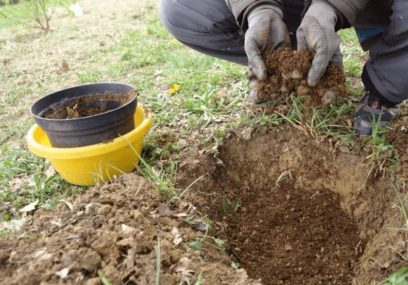 - В качестве дренажа засыпьте по горсти крупнозернистого песка на дно посадочных ям.
