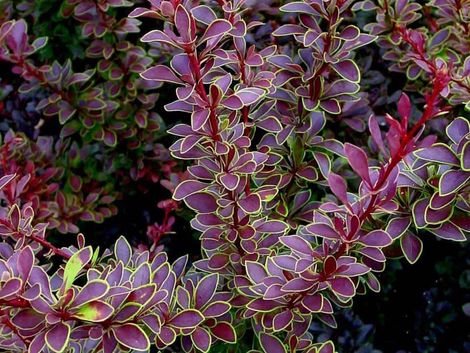 Этот декоративный колючий кустарник запоминается своей блестящей пурпурной листвой. Примечательны красные листья данного сорта — достигая в длину до 2 см, они окантованы заметной желтой или салатовой каймой. Цвет сохраняется в течение всего лета. Осенью красная окраска листвы усиливается перед тем, как она опадет.