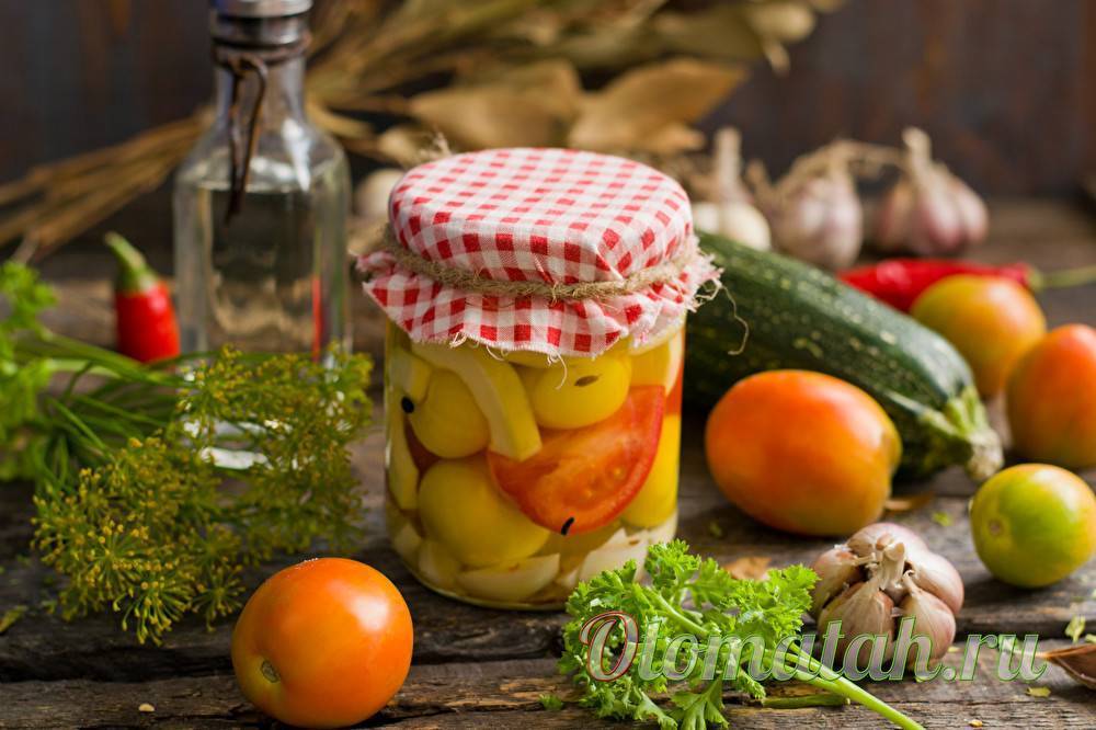 Маринованные кабачки с помидорами, вкусная заготовка на зимуПредлагаю попробовать вкусный рецепт маринованных хрустящих кабачков с кисло-сладкими помидорами в остром и…