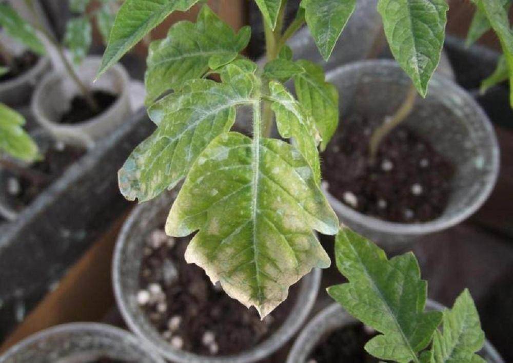 Светлые желто-зеленые пятна на листьях помидоров — дефицит азота
