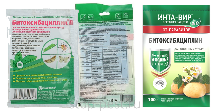 - В несколько подходов (не более 3 повторений за короткий срок) проводят борьбу Битоксибациллином с колорадским жуком и картофельной молью.