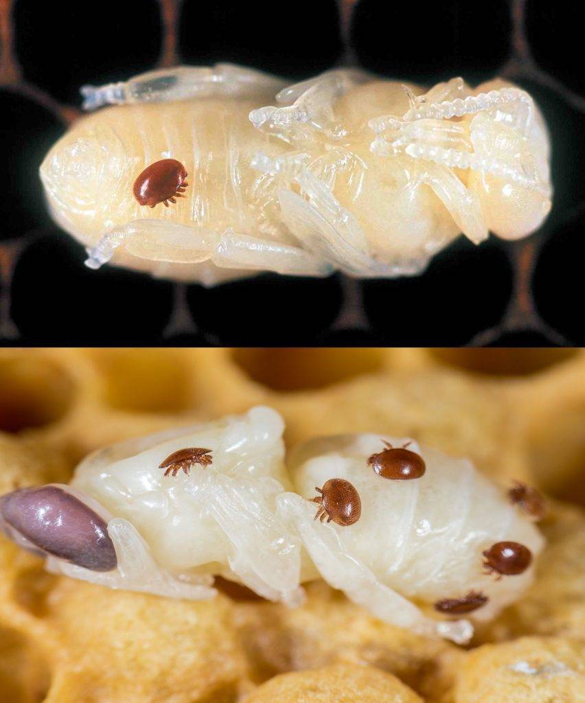 На теле насекомых могут появляться коричневые пятнышки, похожие на просяные зернышки. При чрезмерном размножении клещей они полностью парализуют работоспособность и процессы жизнедеятельности пчел. Если не избавиться от паразитов, то они за год могут превратить процветающую пасеку с сборище еле шевелящихся пчел, неспособных даже прокормить свое потомство.
