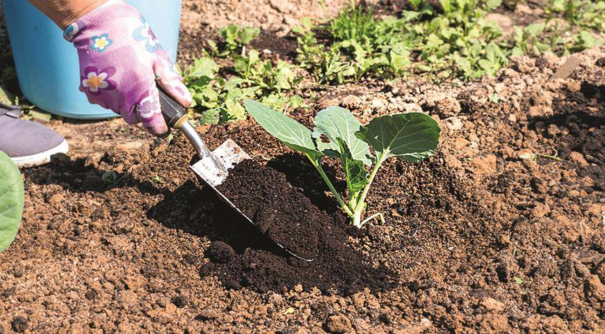 Пока рассада перед высадкой напитается влагой, подготовьте лунки для посадки. В каждую лунку внесите 1 стакан древесной золы, 1 столовую ложку двойного суперфосфата и 1 чайную ложку мочевины (или другого азотного удобрения). Тщательно перекопайте.
