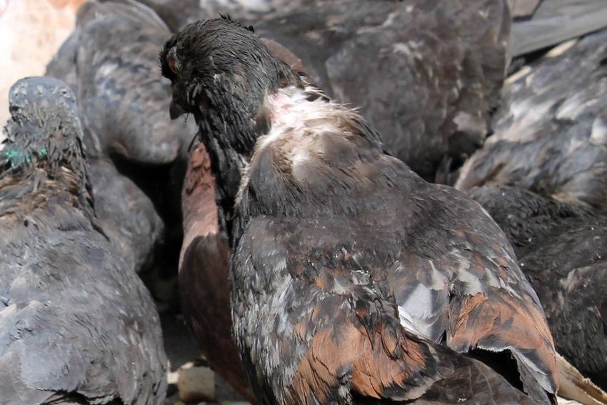 Из-за блох и клещей может полечь все поголовье. Птицы, зараженные паразитами, все время чистят оперение, купаются в песке. В это период пернатых еще можно вылечить. Следующая стадия – выпадение перьев – в этот момент лечить голубей уже поздно.