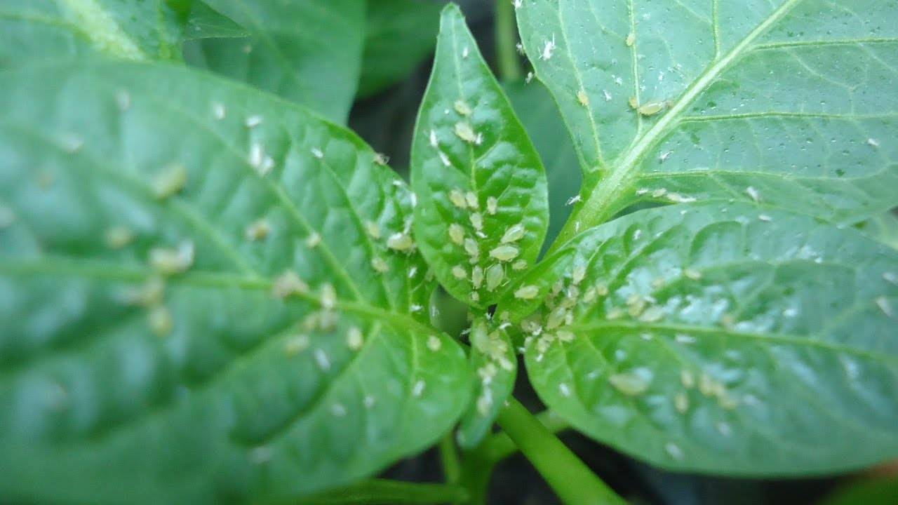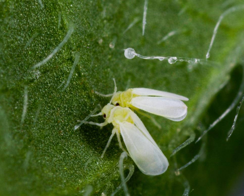Белокрылка – еще один не менее опасный вредитель. Эти насекомые обессиливают растения, так как питаются их соком. Они опасны как во взрослом состоянии, так и в личиночной стадии. Личинок белокрылки можно собрать вручную или смыть водой.