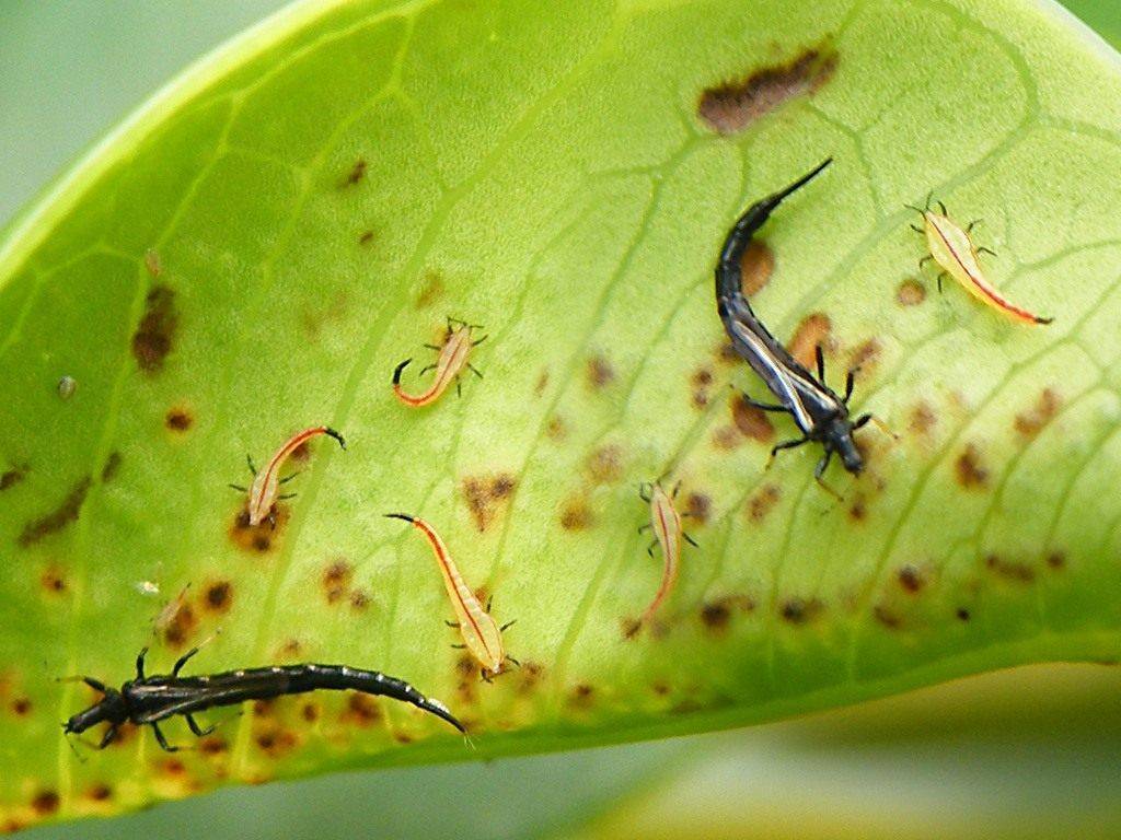 Появление на листьях повреждений чаще всего является результатом жизнедеятельности вредителей