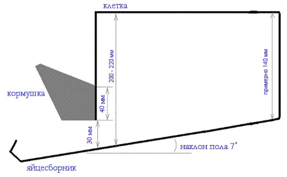 ![]() | Дно каждой клетки закрепить с уклоном в сторону яйцеприёмника |