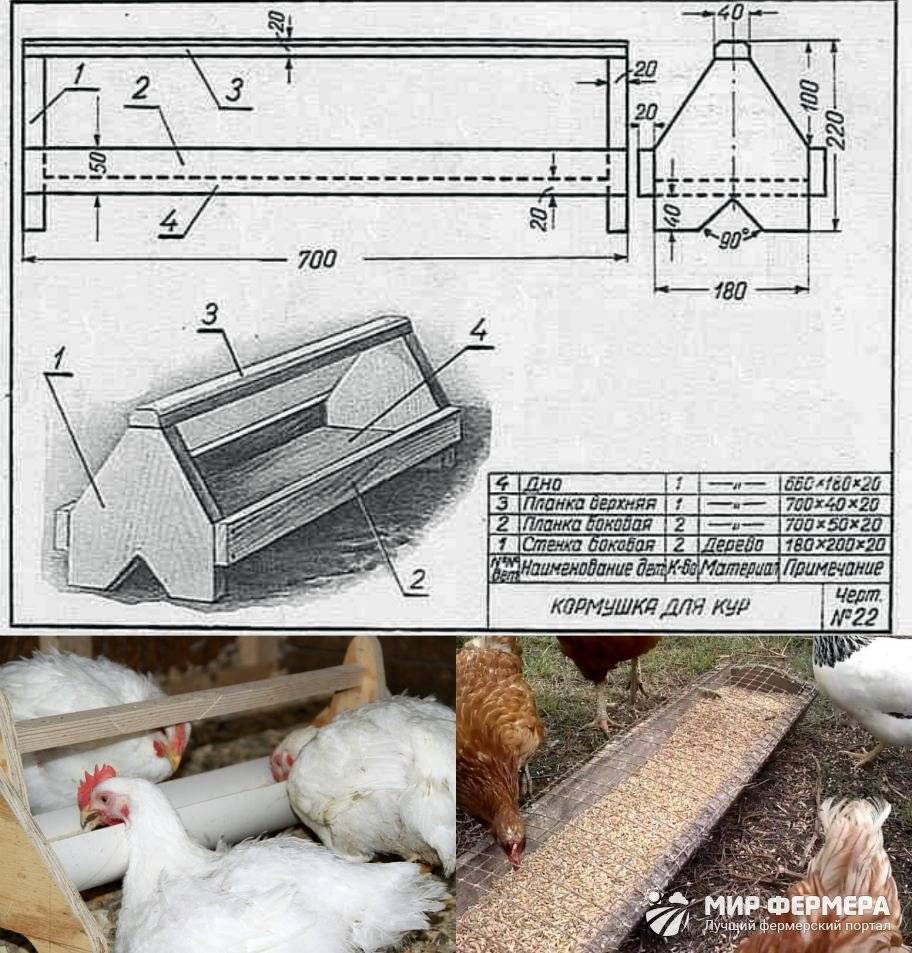 Сделать кормушки и поилки для курятника самостоятельно легко и просто, имея под рукой расходные материалы и инструменты, и подробный план – чертеж их изготовления.