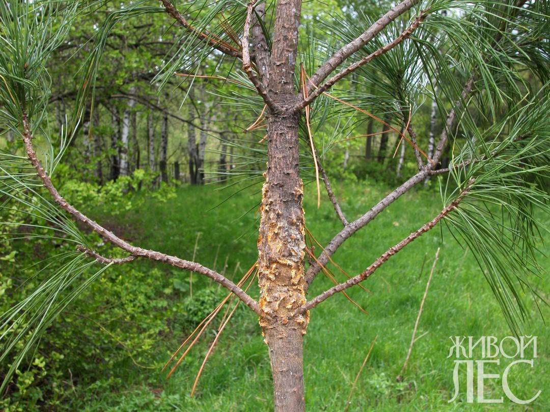 О том, что с сосной не все ладно, можно заметить по нескольким признакам: желтые пятна на хвое, потеки смолы на стволе, оранжевые пузырьки в разрывах коры… Дерево начинает ослабевать, сохнуть и в конце концов может погибнуть. Виновница беды – болезнь – пузырчатая ржавчина.