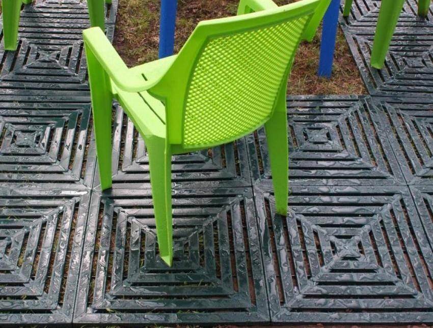 - Резина не впитывает влагу и довольно быстро сохнет, поэтому даже после сильного ливня вы очень скоро будете иметь сухое покрытие в саду.