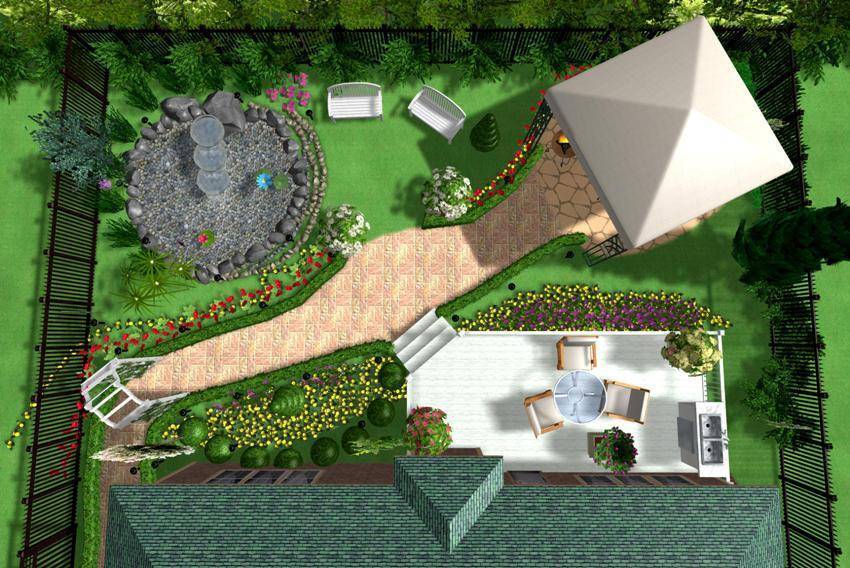 - все садовые площадки и дорожки должны придавать участку стилевое единство и моститься однотипным строительным материалом;