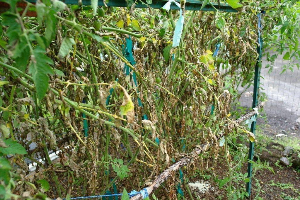 Споры и мицелий этого микроскопического грибка отлично зимуют в почве, на остатках растений, даже на садовом инструменте и в следующем сезоне, при наличии благоприятных условий (высокая влажность и тепло), начинают новый цикл. Чаще всего страдают помидоры от фитофторы, начиная со второй половины лета.
