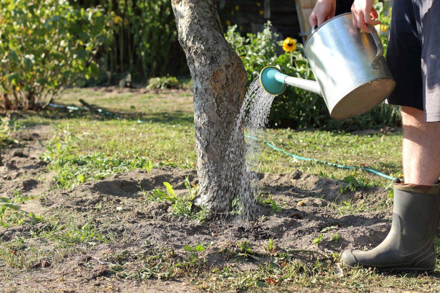 Учитывая все это, если в почве влаги не хватает, а вы житель юга или просто была малоснежная зима, то под каждое дерево каждую неделю нужно выливать по ведру воды, если оно моложе пятилетнего возраста, и вдвое больше — если старше. При этом следите за погодой. Так, если пасмурно и идут дожди, то дополнительные поливы вовсе не обязательны.