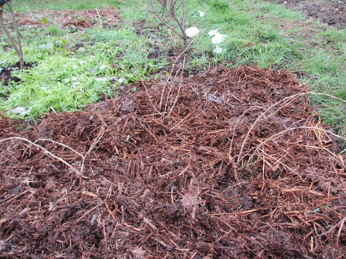 Применяют опилки, солому. Двойной эффект дает слой сидератов, прикрытый соломой. Так зеленое удобрение лучше разлагается и питательные вещества не выветриваются, потому что слой соломы их задерживает.
