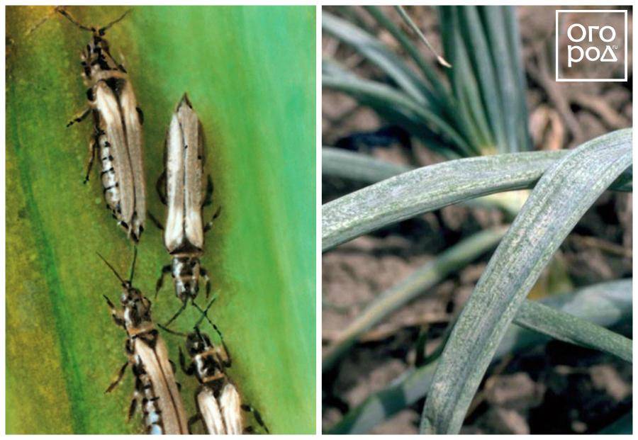 К сожалению, не всегда проблему пожелтения перьев лука можно решить, скорректировав режим полива и подкормок. Порой виной всему – нашествие насекомых-вредителей.