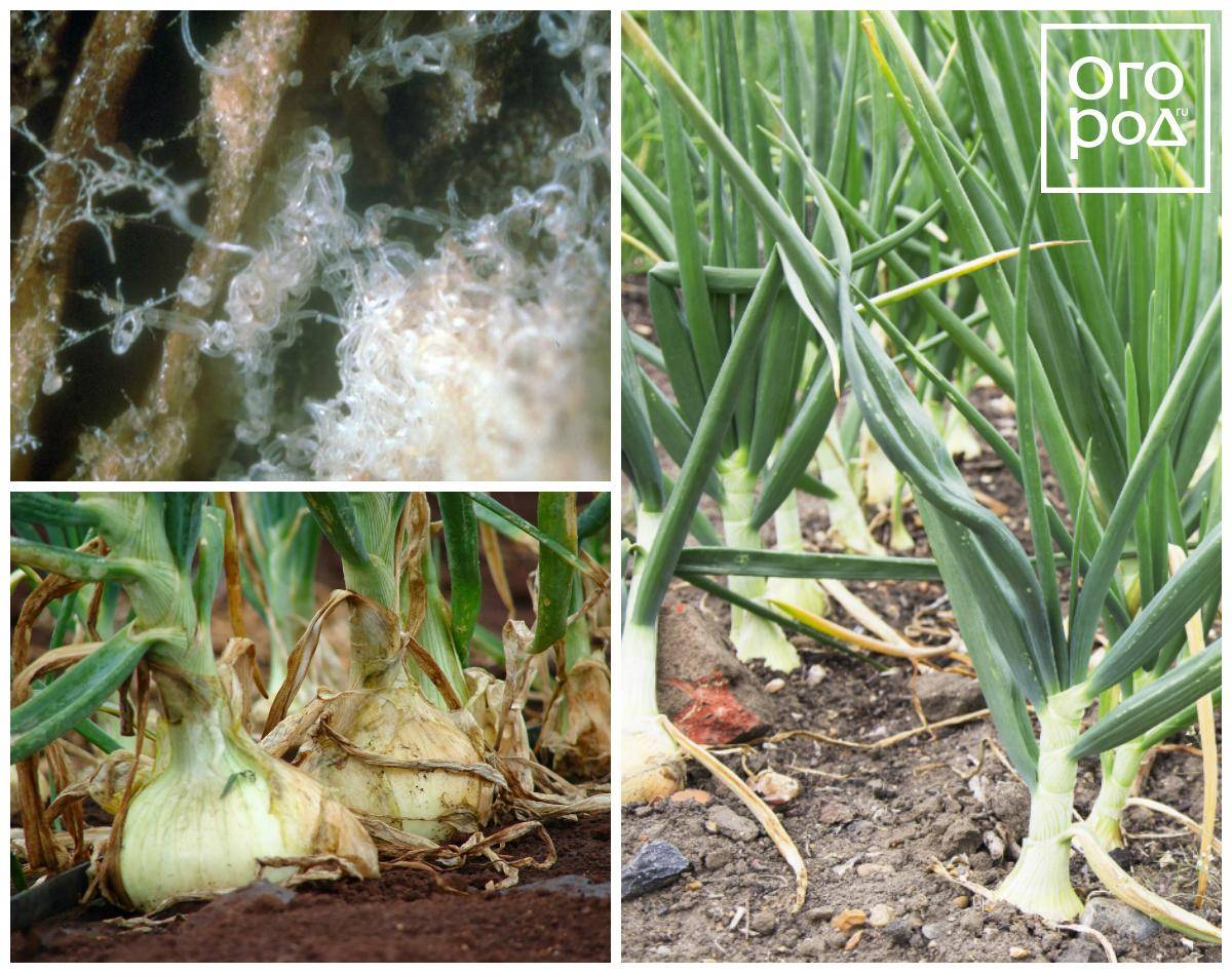 Меры борьбы: К сожалению, в борьбе с нематодой помогает лишь качественная профилактическая обработка севка и почвы перед посадкой. Летом, когда личинки перекочевали из луковицы в перья, остается лишь немедленно сжечь пораженные растения, чтобы не позволить вредителю погубить весь урожай лука.