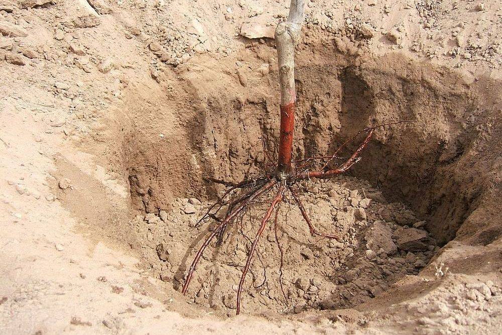 - Выкапывают яму соответствующего размера, чтобы корням в ней было не тесно.