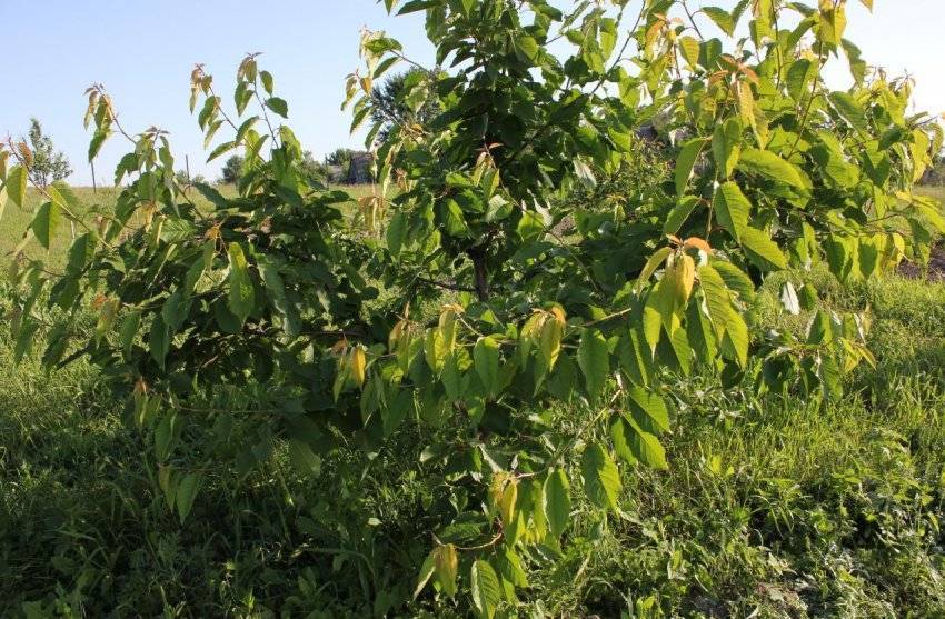 | Клястероспориоз | Листья покрываются пятнами, затем на их месте образуются отверстия. Ягоды высыхает. | Не располагать черешневый сад рядом с больными растениями. |