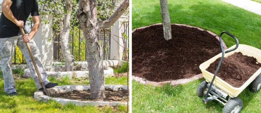 Такие подкормки важно вносить до периода цветения, используя их в качестве приствольного полива. На дистанции 1,5 метра вокруг дерева вырывают канаву, в которую наливают удобрение
