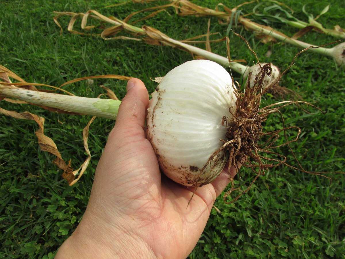В первый год посадки дольками получают цельную небольшую головку-однозубку, через 2-3 года — качественную луковку с дольками. Диаметр головок — 8-10 см. Если нет желания ждать два года, то в пищу можно употреблять и мелкие однозубки.