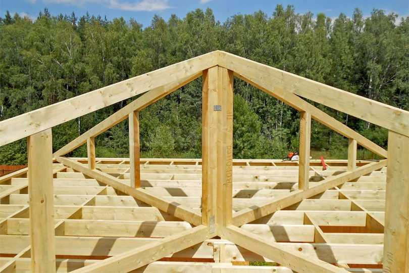 Есть варианты, в которых нет внутренних перегородок. Что же тогда делать? В этом случае стойки нужно будет поставить на балки, которые нужно правильным образом укрепить. Лучше балки делать из бруса диаметром 100 на 200 миллиметров. Это выполняется с целью укрепить конструкцию. Ведь сами балки будут испытывать большие нагрузки, поэтому о надежности всего строения и крыши, в том числе, важно позаботиться заблаговременно.