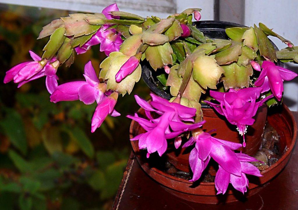 Жаль, что такой подарок своим хозяевам шлюмбергера дарит раз в году с ноября по март. У меня цветение эпифитного кактуса начинается с опозданием. Он может исполнить свою лебединую песню в феврале или в марте. Несмотря на задержку, я все равно очень рада увидеть цветущее чудо, когда за окном бушуют февральские метели.