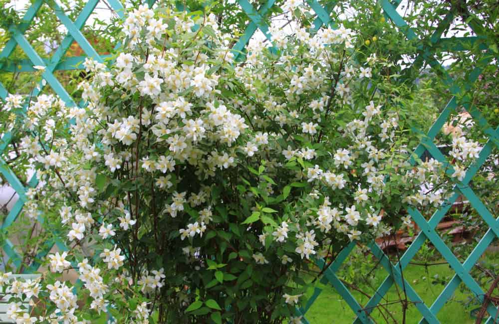 Сорт садового жасмина Ауреус прибавляет по 15-20 см в год