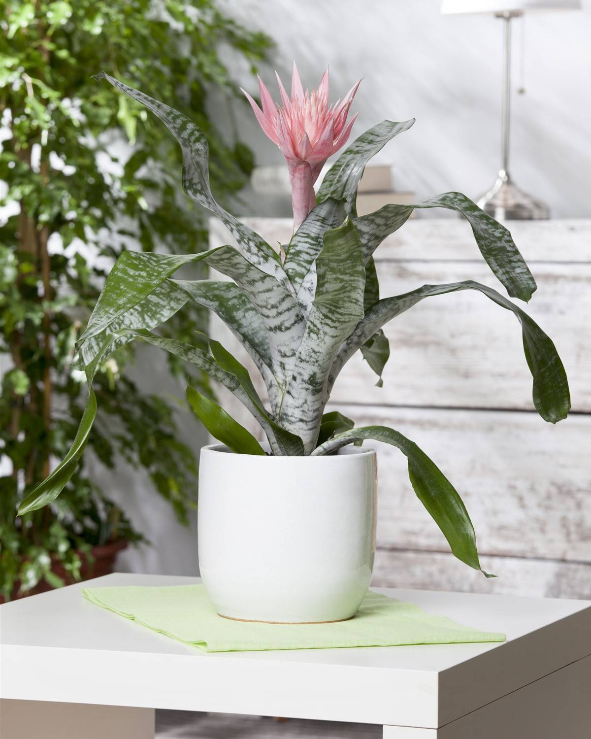 Эхмея – теплолюбивое растение. Оно боится холода, сквозняков, от которых может погибнуть. Оптимальная температура летом – 22-26°С. Зимой столбик комнатного термометра может понизиться до 15°С. Кстати, небольшие перепады дневных и ночных температур стимулируют образование цветоноса.
