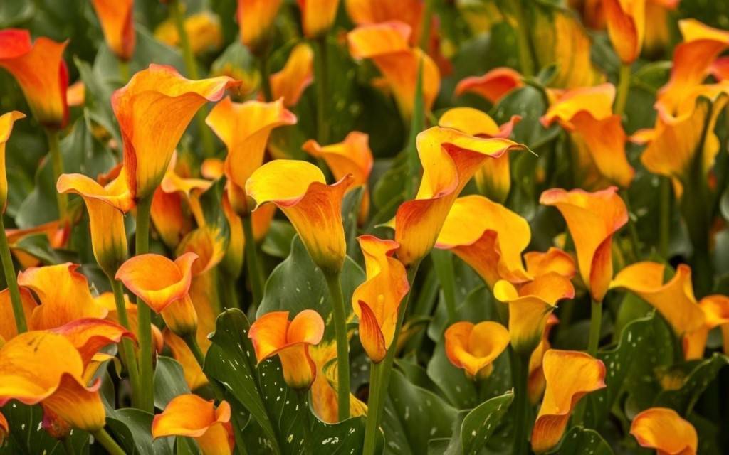 Праздничный желто-оранжевый наряд каллы Монте-Карло станет главным акцентом в дизайне комнаты