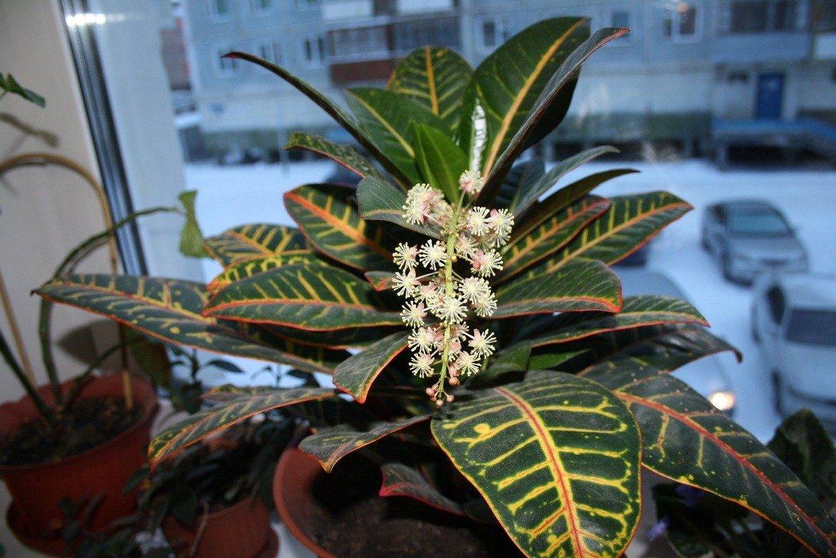 Очень красивая форма и окраска листьев этого кодиеума (кротона)