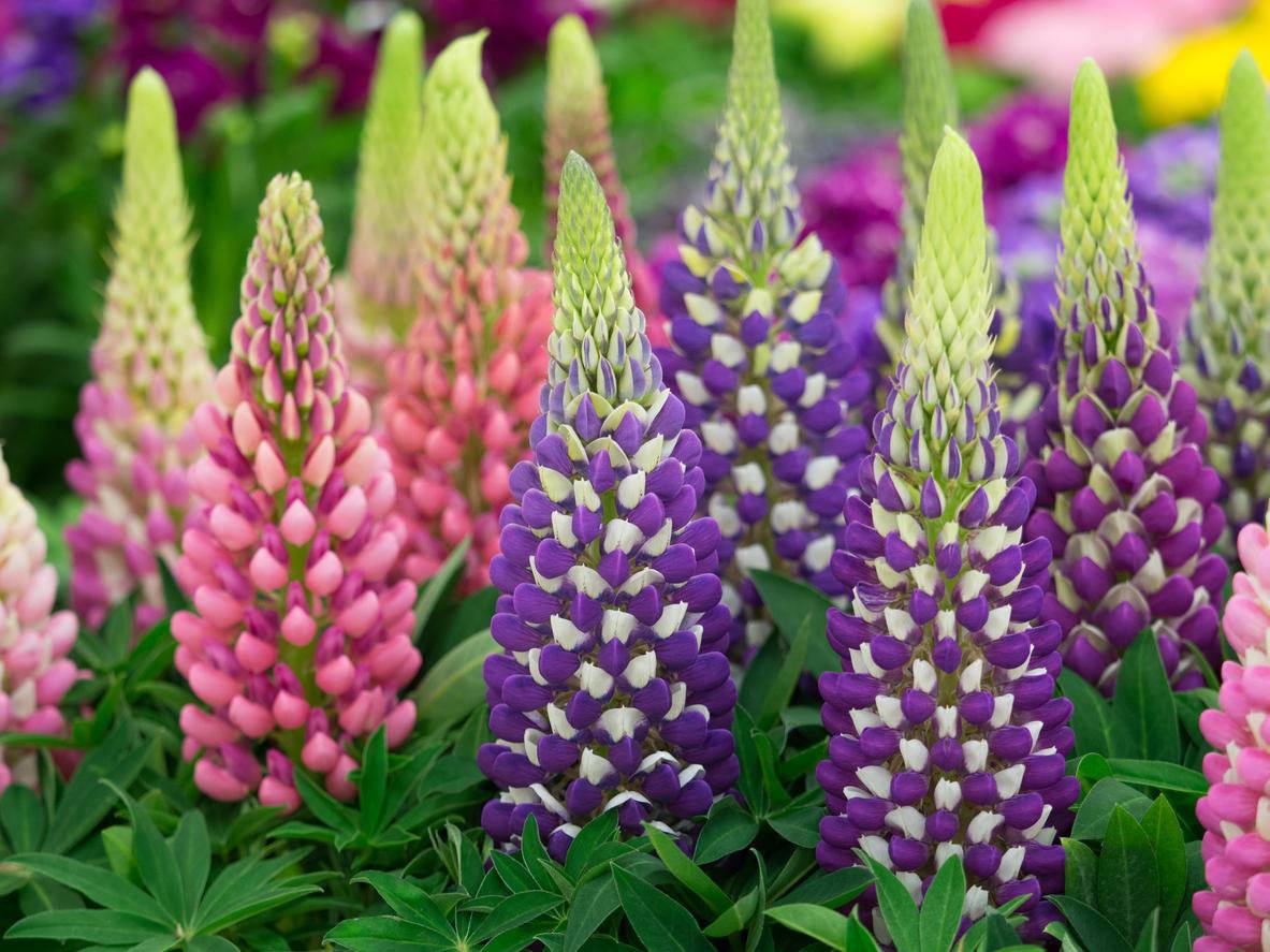 Сочетание этих растений с другими цветами создаёт яркую композицию в саду. Цветы люпины (посадка и уход с фото ниже) не капризны, хорошо принимаются практически в любой почве, не нуждаются в обильном поливе, легко размножаются.