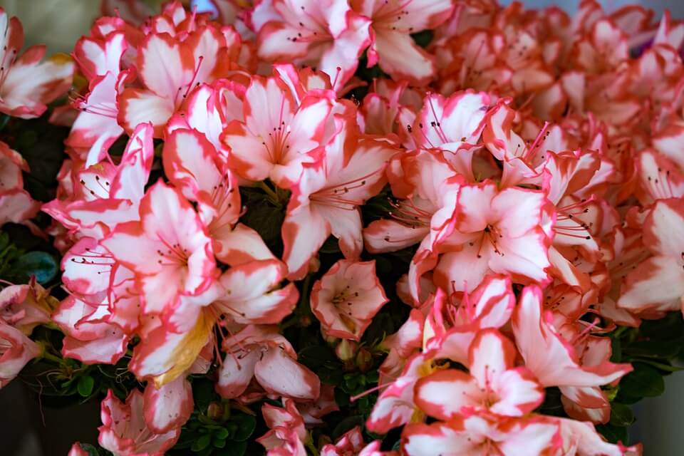 Во время цветения растение покрывается цветками различных окрасов: белыми, розовыми, фиолетовыми, красными, желтыми. Цветки азалии крупные, напоминают раскрытые крылья бабочки. В середине цветка длинные тычинки в количестве 5 штук (у рододендронов их 10 штук). Цветки собраны в кисти (от 3 до 6 штук), цветение длительное. Азалия – растение, которое требует особых условий выращивания. В случае нарушения агротехники не завязывает цветочные бутоны, сбрасывает листья.