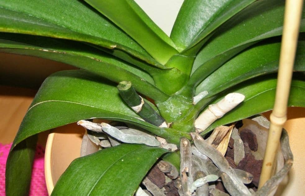 У корня конец имеет тупое окончание. Цветонос растет из пазухи листа растения. Орхидея выпускает стрелу. Бывает, что он вылезает из точки роста. Все остальные ростки, которые появляются из стебля могут являться либо детками, либо корешками. Если стебель развивается быстро, то это свидетельствует о правильном уходе. Но если росток растет медленно, а потом желтеет и засыхает, это говорит о недостатке освещения, нерегулярном поливе или неправильно вносимых подкормках. Обычно на развитии стебля уходит до 2 или 3 месяцев.