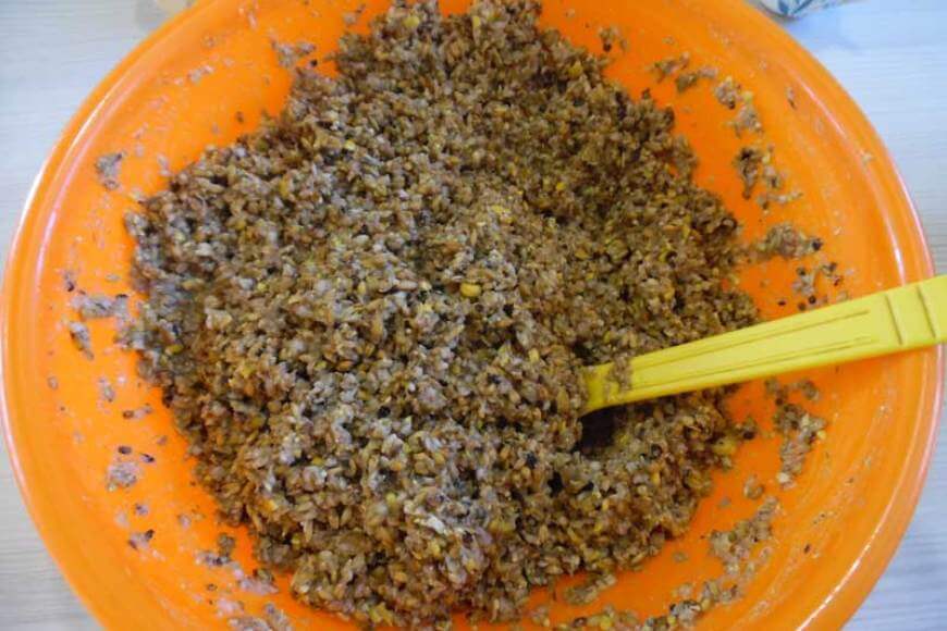 Малышам дают смесь из творога и мелко нарубленного крутого яйца, а также крутую пшенную кашу и различную дробленую крупу.