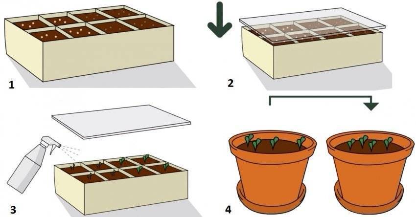 Далее черенки высаживаются в контейнеры, заполненные питательным субстратом, присыпаются тонким слоем песка, накрываются плёнкой и проращиваются при комнатной температуре на рассеянном свету. На протяжении всего периода проращивания необходимо следить за поддержанием умеренной влажности в мини-тепличках
