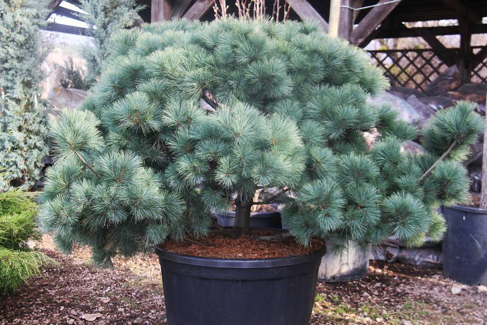 Сосна боснийская (белокорая) Шмидта имеет густую, плотную шарообразную крону, вырастает до 0,5 м в возрасте 10 лет.