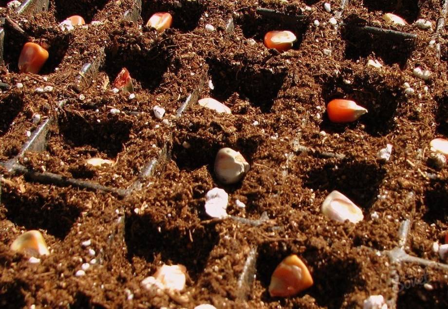 Для проращивания кукурузы берут садовую землю, смешанную с песком и перегноем, чтобы субстрат был рыхлым и плодородным. Перед посевом семена замачивают в течение 12-24 часов, затем помещают на глубину 2,5-3 см.