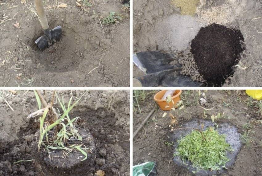 Вынутый при подготовке ямы грунт нужно соединить с торфом, прошлогодним навозом и микроэлементами. Если почва кислая стоит добавить известь.